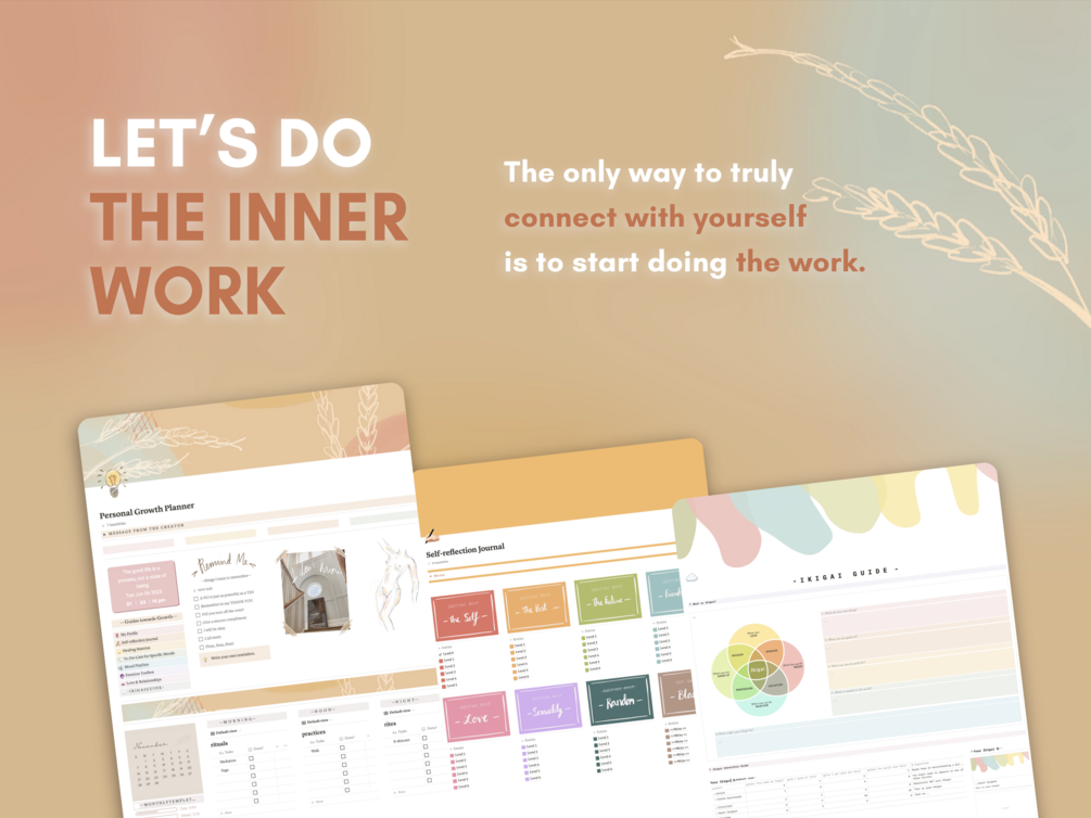 A complete notion template created to help you grow. Filled with insights and tools to accompany you ion your self-growth journey.