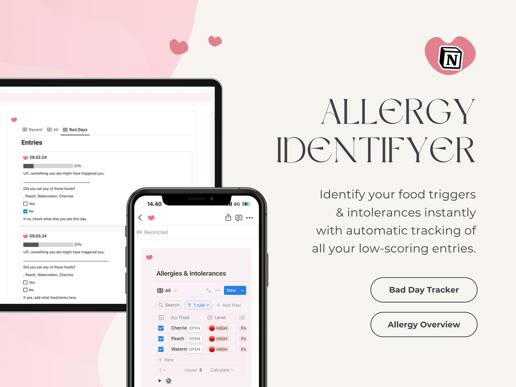 ✧ Personalized Allergy & Intolerance Overview: Maintain a detailed and customizable record of your allergies and intolerances.